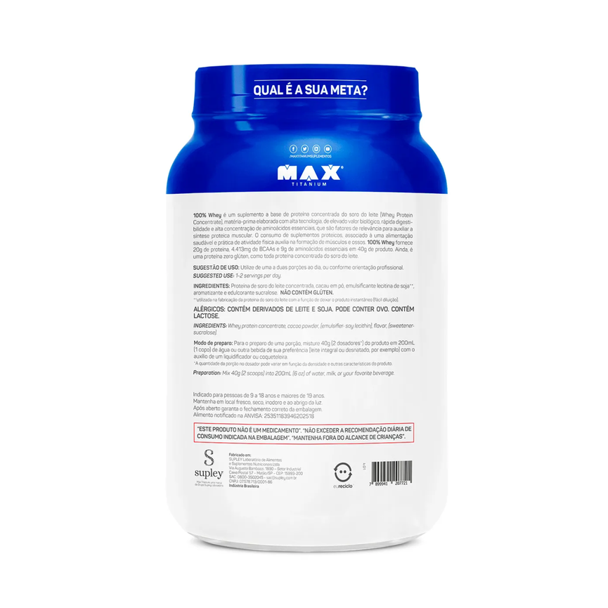O Whey Protein mais querido da Max Titanium agora está ainda mais gostoso! São 20g de proteína por dose, mais de 4.400 mg de BCAA, alta digestibilidade e sabores incríveis em cada scoop. Performance, qualidade e sabor de verdade – tudo no mesmo produto.