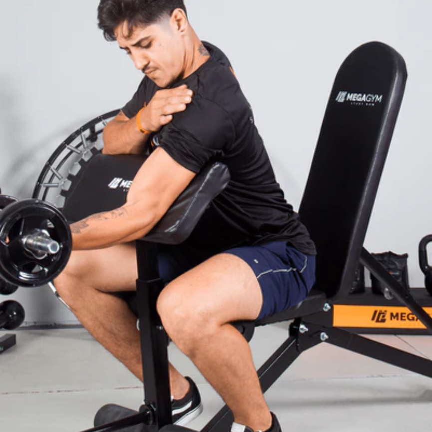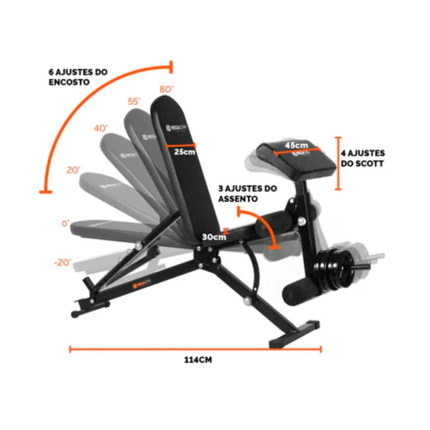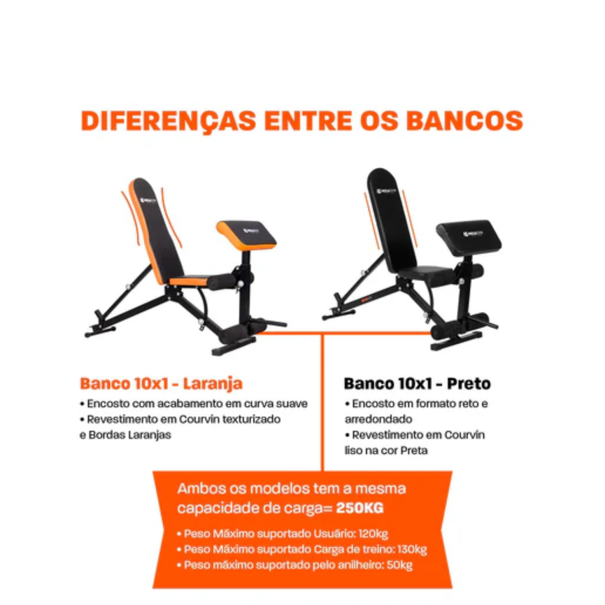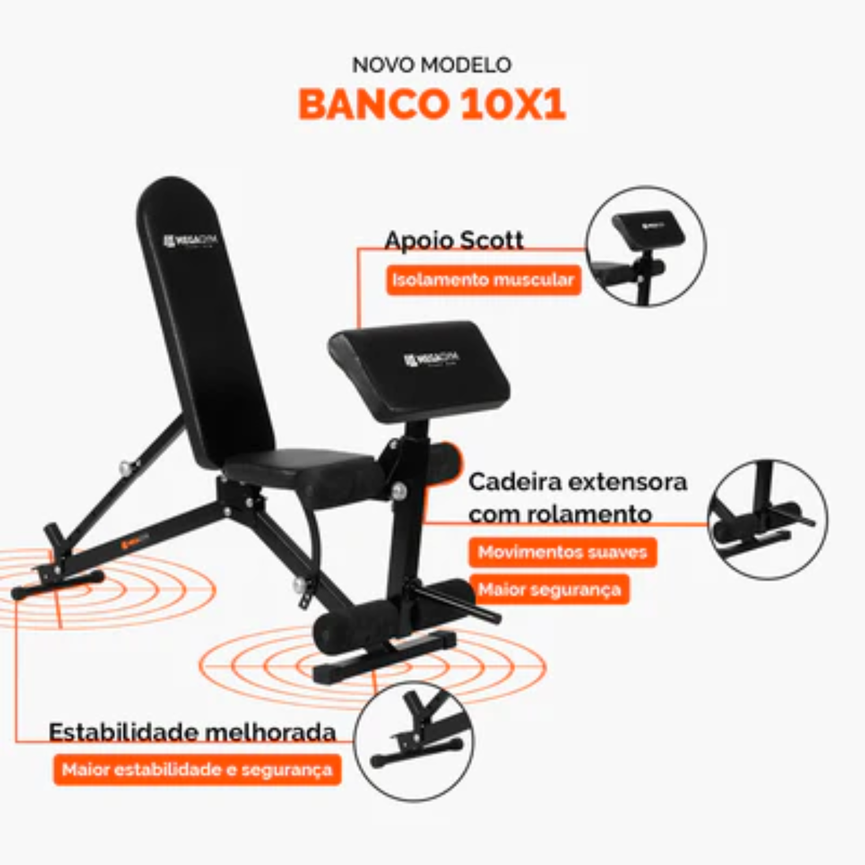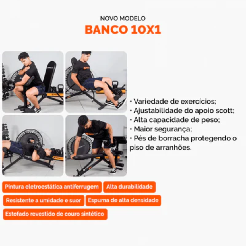 Banco De Musculação 10x1 Posições: Resistente, robusto e feito para suprir todo tipo de treino. Com módulos para exercícios de inferiores e superiores, este banco é a escolha perfeita para alcançar seus objetivos de musculação. Sua versatilidade permite combiná-lo com racks e suportes para uma experiência superior. Sua grande diversidade de exercícios compatíveis vai te proporcionar uma prática de treinamento mais completa em um único equipamento. Eleve seu desempenho, conquiste resultados incríveis e transforme seu corpo. Adquira o Banco de Musculação 10x1 Posições e supere seus limites!