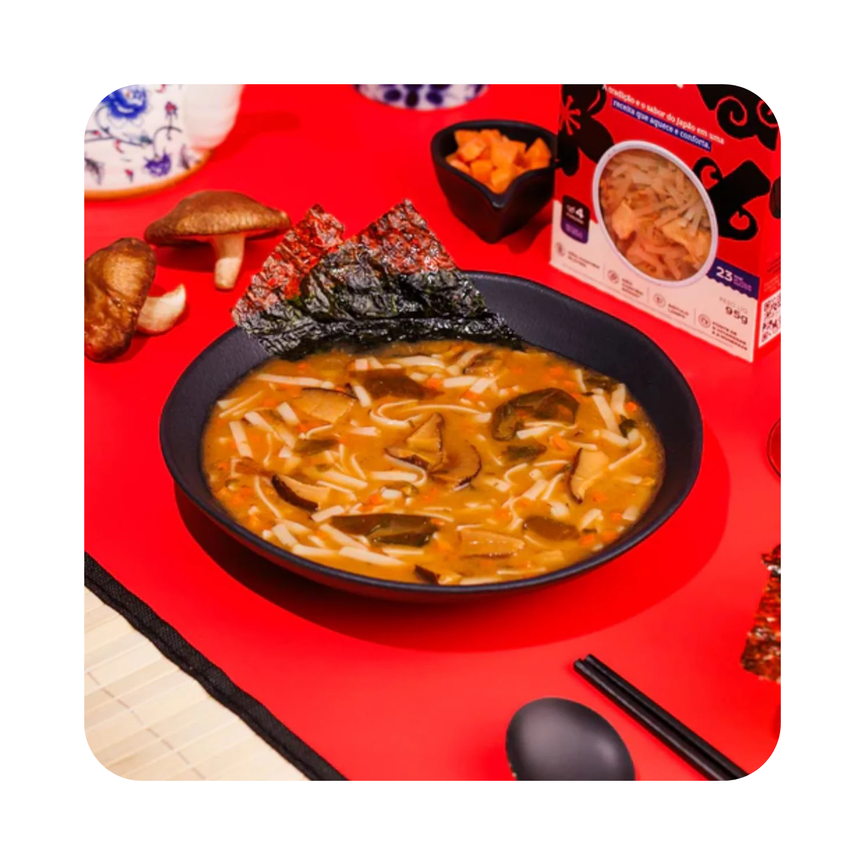 Por que eu sou uma delícia? Eu possuo macarrão sem glúten, caldo de peixe, cogumelo shitake e gengibre para transportar você ao mundo da maravilhosa culinária japonesa. Se você sempre sonhou em fazer lámen em casa bem rapidinho, eu tô aqui para te ajudar! E o melhor: sou fit e possuo muitas vitaminas.