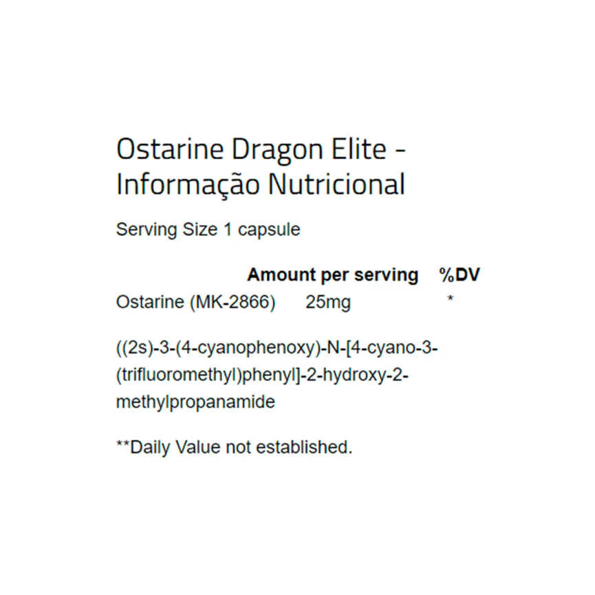 Ostarine.OUTROS INGEDIENTES: Farinha de Arroz, Estearato de Magnésio, Gelatina.