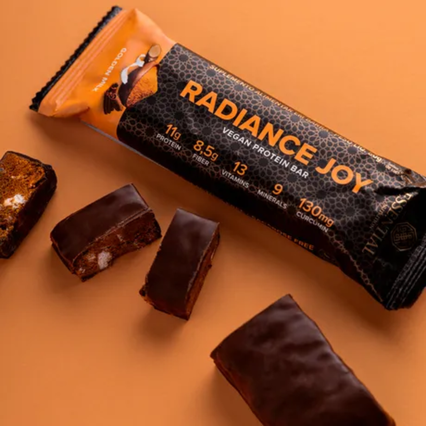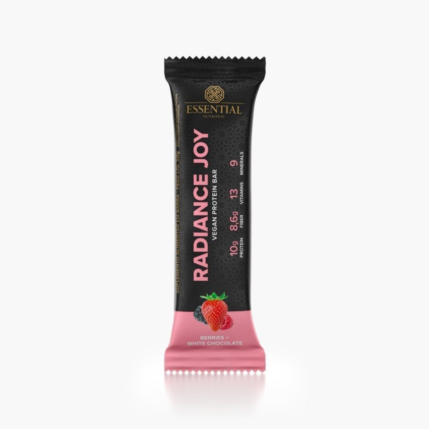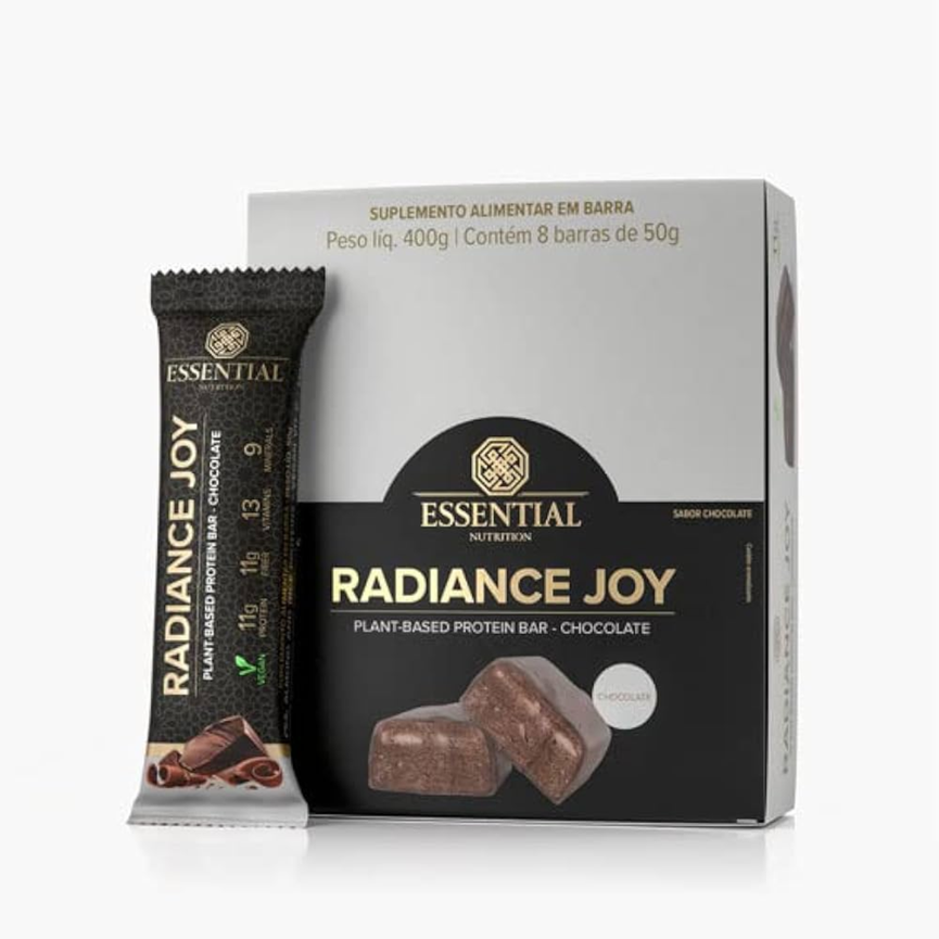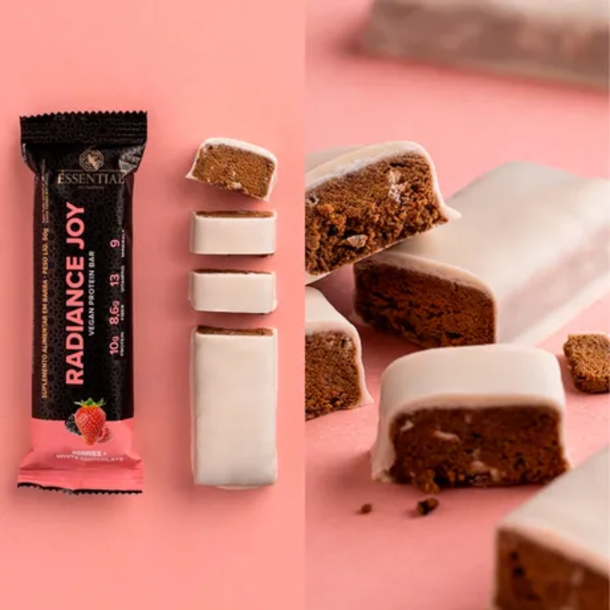 Radiance Joy Plant-Based Protein Bar – Chocolate é uma barra de proteína vegana rica em sabor e nutrientes. Sua incrível composição traz um blend de proteínas de ervilha, amêndoa e arroz, nibs de cacau, fibras, vitaminas e minerais. Experimente essa barrinha como um pré-treino ou aquele lanche que te deixa com o coração cheio e a consciência leve. Prepare-se para uma alegre surpresa!
