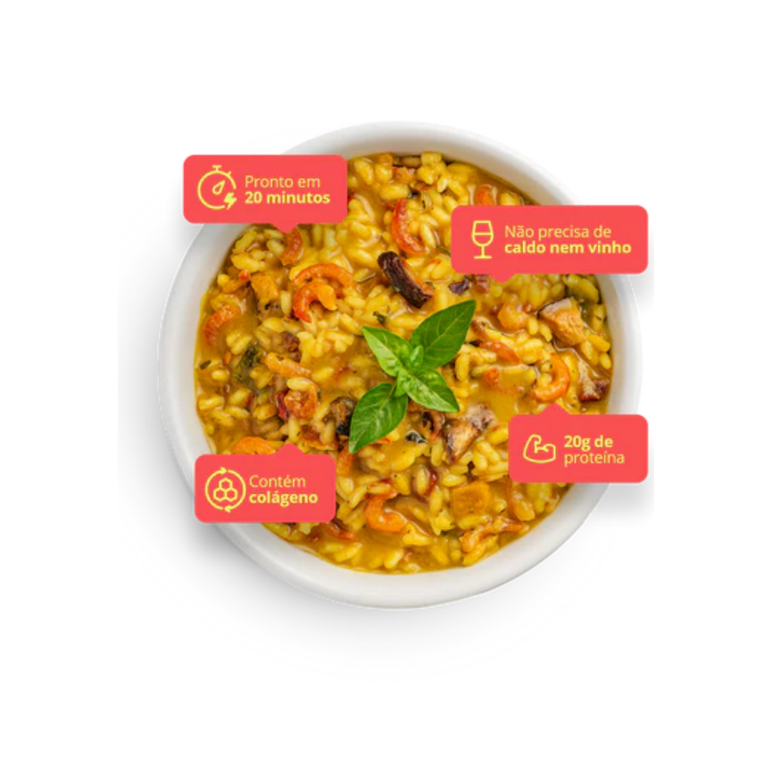 Primeiro risoto com camarão desidratado do Brasil!* Delicado, sabor marcante e perfeito para impressionar sem esforço.