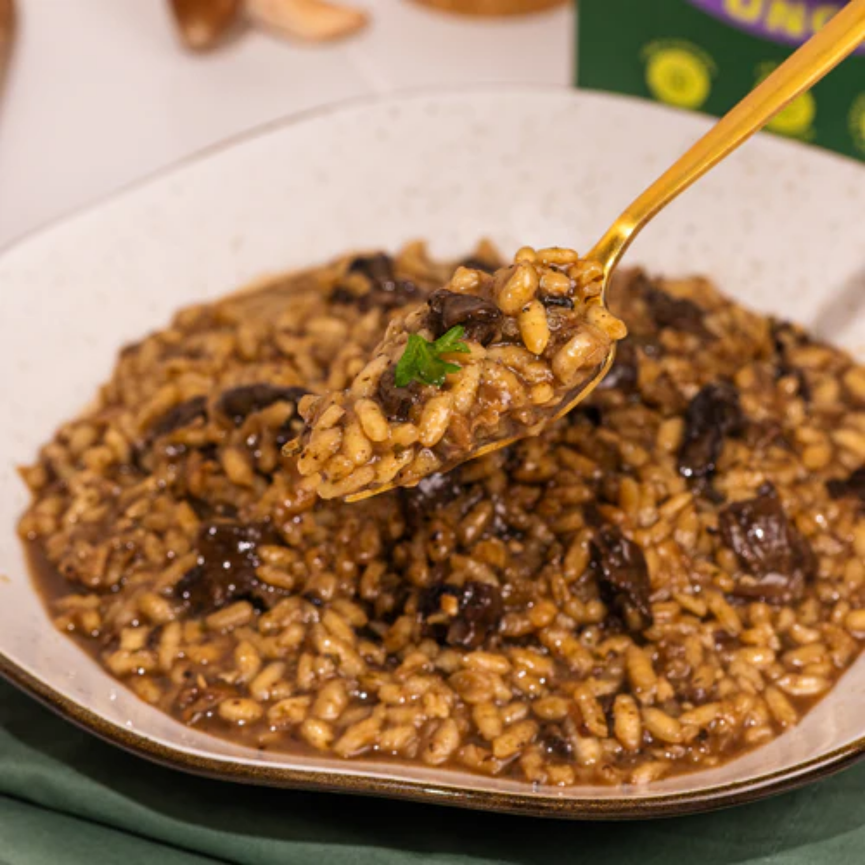Combinamos funghi e shiitake para um sabor sofisticado, cheio de umami. É intenso, cremoso e vai bem com tudo.