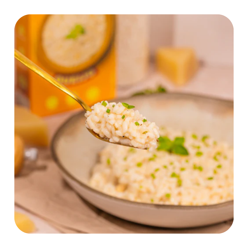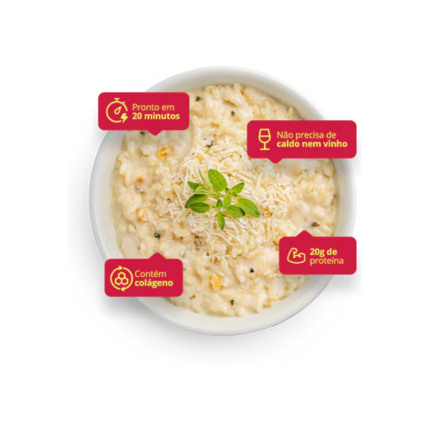 Perfeitos para quem quer refeições 5 estrelas, nutritivas e prontas em minutos, os risotos Holy são feitos com arroz arbório, ingredientes naturais e um toque de chef.