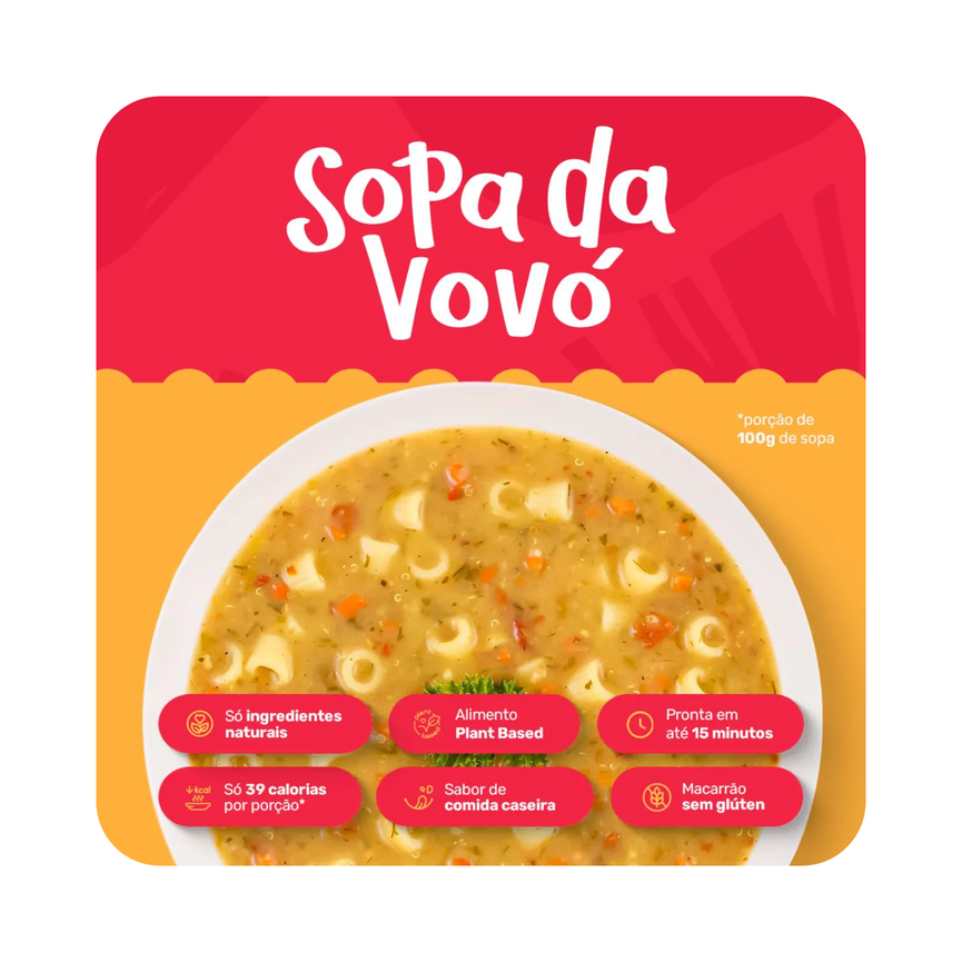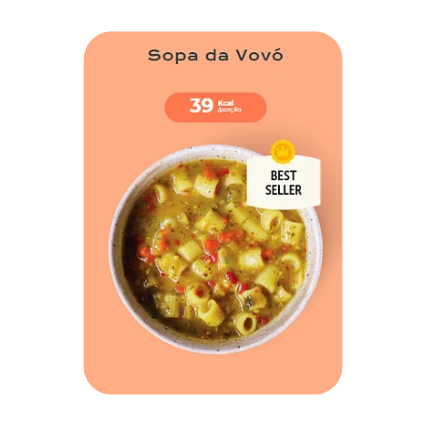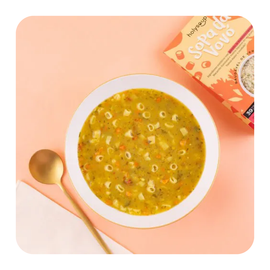 Eu sou a queridinha do público! Tenho um macarrão saudável super saboroso e muitos legumes como amam as vovós. Sou ótima para auxiliar na sua imunidade e te ajudar na absorção de mais nutrientes de forma super saborosa. A comfort food mais prática do Brasil.